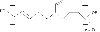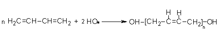 Diversos polióis com estrutura hidrocarbônica são encontrados atualmente no mercado. A principal vantagem destes polióis é a alta resistência à hidrólise, ácidos e bases, dos PU’s com eles preparados. Os PU’s feitos com polióis com estrutura hidrocarbônica saturada têm elevada resistência à temperatura e são usados em encapsulamento de componentes eletrônicos na industria automotiva. Dentre os diversos polióis com estrutura hidrocarbônica podemos citar o polibutadieno líquido com terminação hidroxílica (PBLH). O PBLH é obtido pela polimerização do butadieno, iniciada pelo peróxido de hidrogênio, utilizando um álcool como diluente (Figura 1.32).